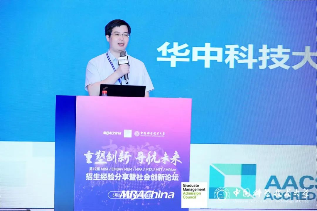 中南财经政法大学工商管理学院院长兼MBA教育中心主任吴海涛就“五大融通推进融通型商学院建设”进行主题发言。他提出将从文文融通、文理融通、科教融通、产教融通、内外融通这五大融通入手,加强学院组织领导,发挥学科专业优势,力促专业迭代升级,集合力量建设融通型学院。