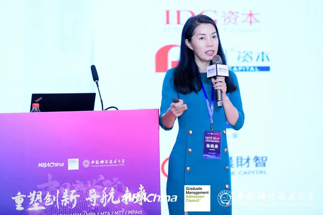 长江商学院助理院长杨晓燕就“数智时代商学新趋势”进行主题发言。她提出,一定要响应国家战略,助力科技创新,培养懂科技、懂商业的通识人才。新时代的管理教育要交叉融合创新,长江商学院在此方面有着独特优势,将开启新商业科技MBA创新课程。