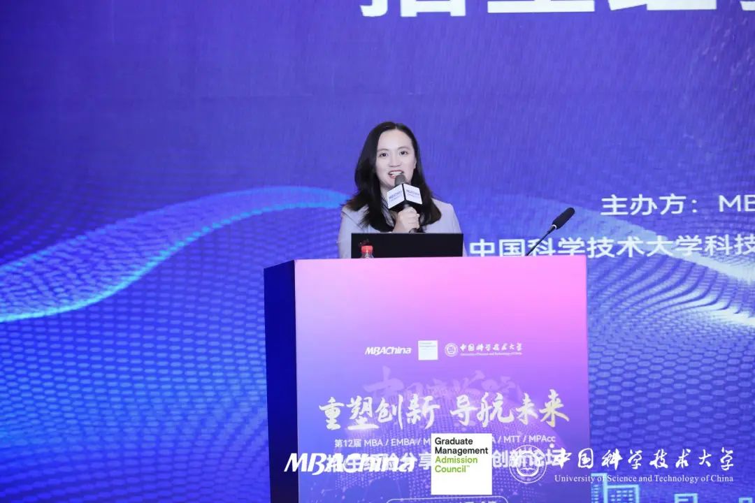 上海交通大学安泰经济与管理学院MBA中心副主任傅晗玮就“新变局下商学院生态与MBA价值赋能的探索——交大安泰MBA视角”进行主题发言。她表示,在百年未有之大变局下,中国管理教育要有中国自己的案例、方法和模式。在此背景下应建设打破壁垒的行业研究、与时俱进的课程体系、跨界沟通的交流平台。