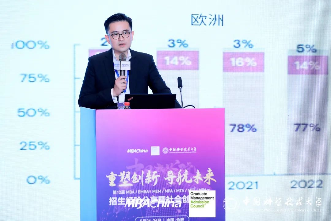 GMAC™大中华区总监陈振轩就“数智时代下商学院申请趋势洞察及招生入学考试的未来升级”进行主题发言。从GMAC概况、全球商学院潜在学生趋势洞察、商学院招生入学考试的未来升级等方面展开演讲。GMAC将提供专业的解决方案以应对市场招生的挑战,GMAT也有着更高效的体验、更灵活的考试、更具洞察力的预测指标。