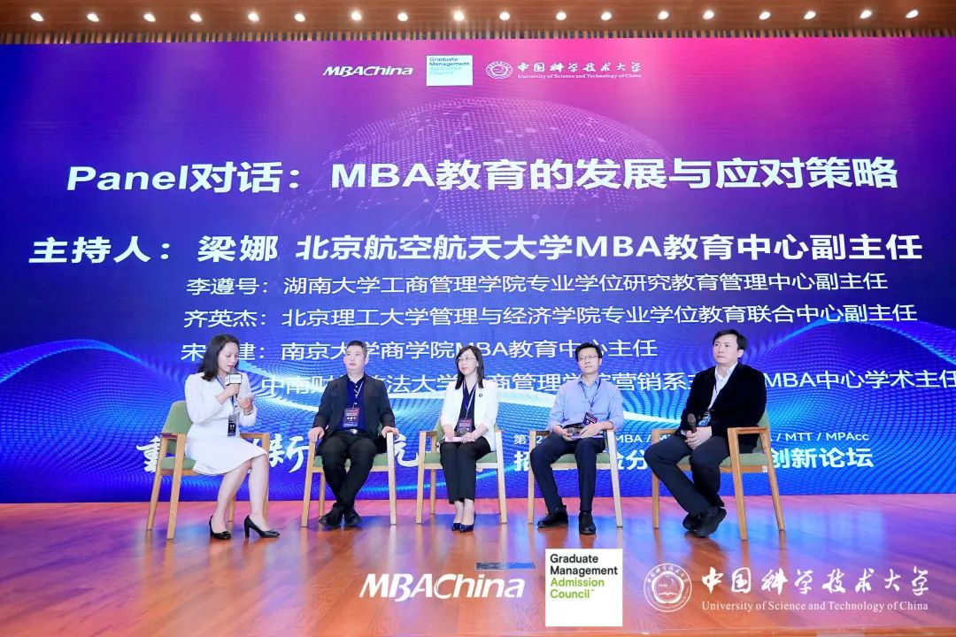 主题发言后,由北京航空航天大学MBA教育中心副主任梁娜主持,进入Panel对话环节。湖南大学工商管理学院专业学位研究生教育管理中心副主任李遵号、北京理工大学管理与经济学院专业学位教育联合中心副主任齐英杰、南京大学商学院MBA教育中心主任宋培建、中南财经政法大学工商管理学院营销系主任兼MBA中心学术主任杜鹏围绕MBA教育的发展趋势与应对策略展开精彩分享,为MBA教育发展带来诸多的思考,提供了宝贵的建议。