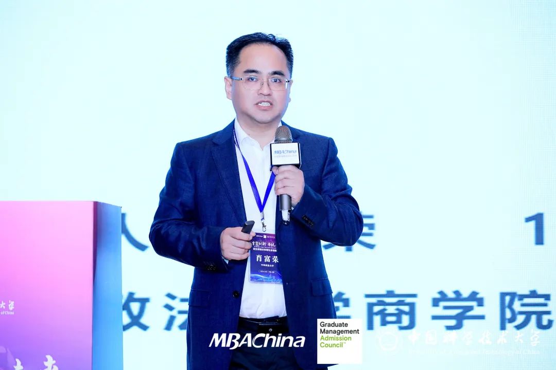 中国政法大学商学院院长助理肖富荣就润商有法,行稳致远——谈证据思维与MBA招生进行主题发言。中国政法大学管理教育的最大特色是法商复合型人才培养,在法商管理中,证据思维尤为重要。肖富荣老师称证据是证明企业优秀的一切事实,强烈的主体意识能让主体变得强大。