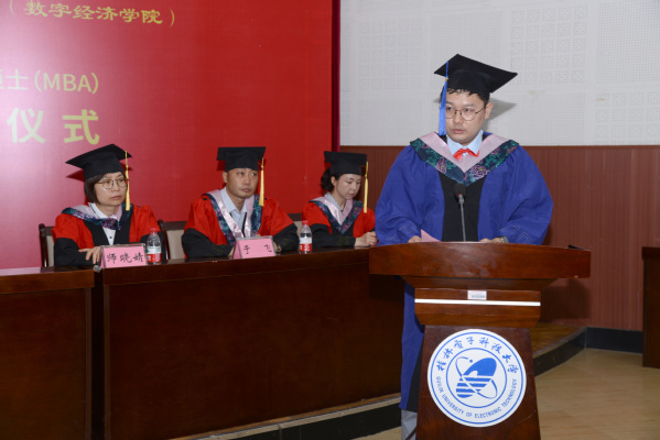 随后,商学院院长(数字经济学院)兼MBA教育中心主任张发明教授进行致辞,张院长向全体毕业生表示祝贺,向同学们的家属表示感谢,并对毕业生们提出三点期望:1、强化终身学习的意识,坚持不懈打造和提升自我核心竞争力。2、号召广大同学勇于承担时代责任和社会义务。3、毕业后利用好MBA校友平台,积极的参加各地同学会活动,继续传承MBA的优秀基因,助力各界校友在各自岗位有所成就。