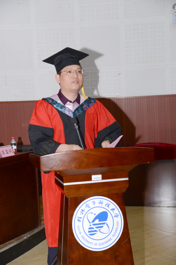 典礼伊始,与会人员全体起立并奏唱国歌。曹辉景总会计师首先致辞,他代表学校对全体MBA毕业生表示最热烈的祝贺和最诚挚的祝福,充分肯定了同学们在校期间克服各种挑战和困难所取得的成长与进步,期望同学们离开母校后,以梦为马、不负韶华,利用在校期间所学到的知识,为国家发展和行业进步做出贡献。同时,他叮嘱所有毕业生,桂电永远是大家避风的港湾,欢迎大家常回家看看。