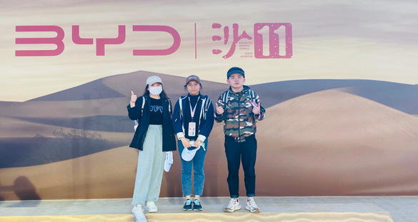 到达沙11博览会,我们一起拍照留念,从照片谁能看出来我们三个人中有两个病号?但博览会现场的氛围感染了大家,每一个院校的同学眼神中都充满了对未来3天徒步的期待、都怀揣着为校争光、挑战自己的坚毅。所以从拍照的这一刻我们更加坚定了要征服沙漠的信念,不论比赛结果如何,一定要用最坚韧的精神面对亚沙!