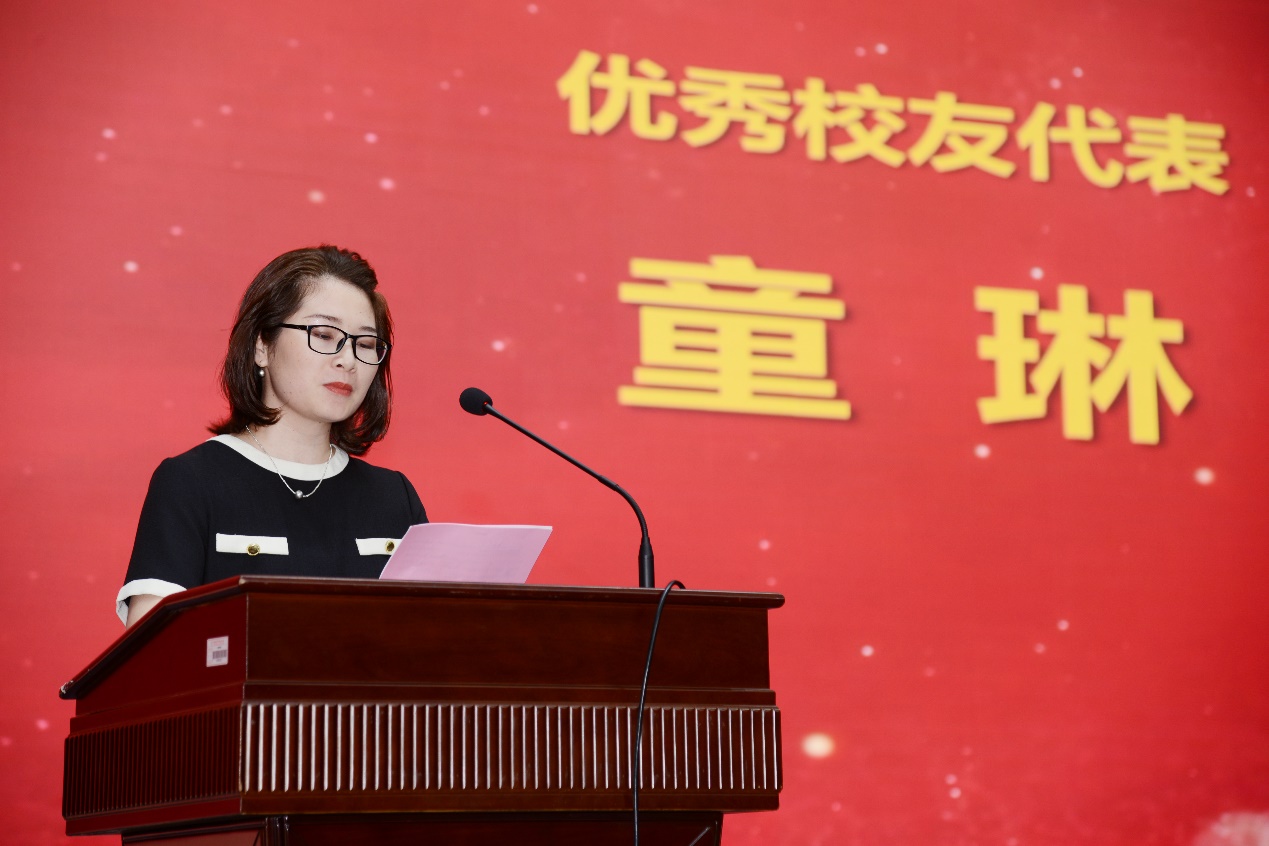 优秀校友代表、首届MBA学员童琳致辞。她回顾了自己的MBA学习经历和收获,分享了MBA十四年发展历程中的感受和感悟。她鼓励新同学要珍惜求学的宝贵时光,不忘初心,相互支持,相互学习,共同进步,实现梦想。
