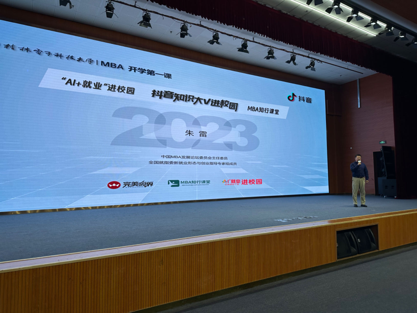 同时,本次开学第一课活动还是MBA知行课堂和“AI+就业”进校园高校首场演讲。活动通过抖音平台“抖音知识大讲堂”、“MBA知行课堂”和“AI+就业进校园”三个共创账号现场直播。