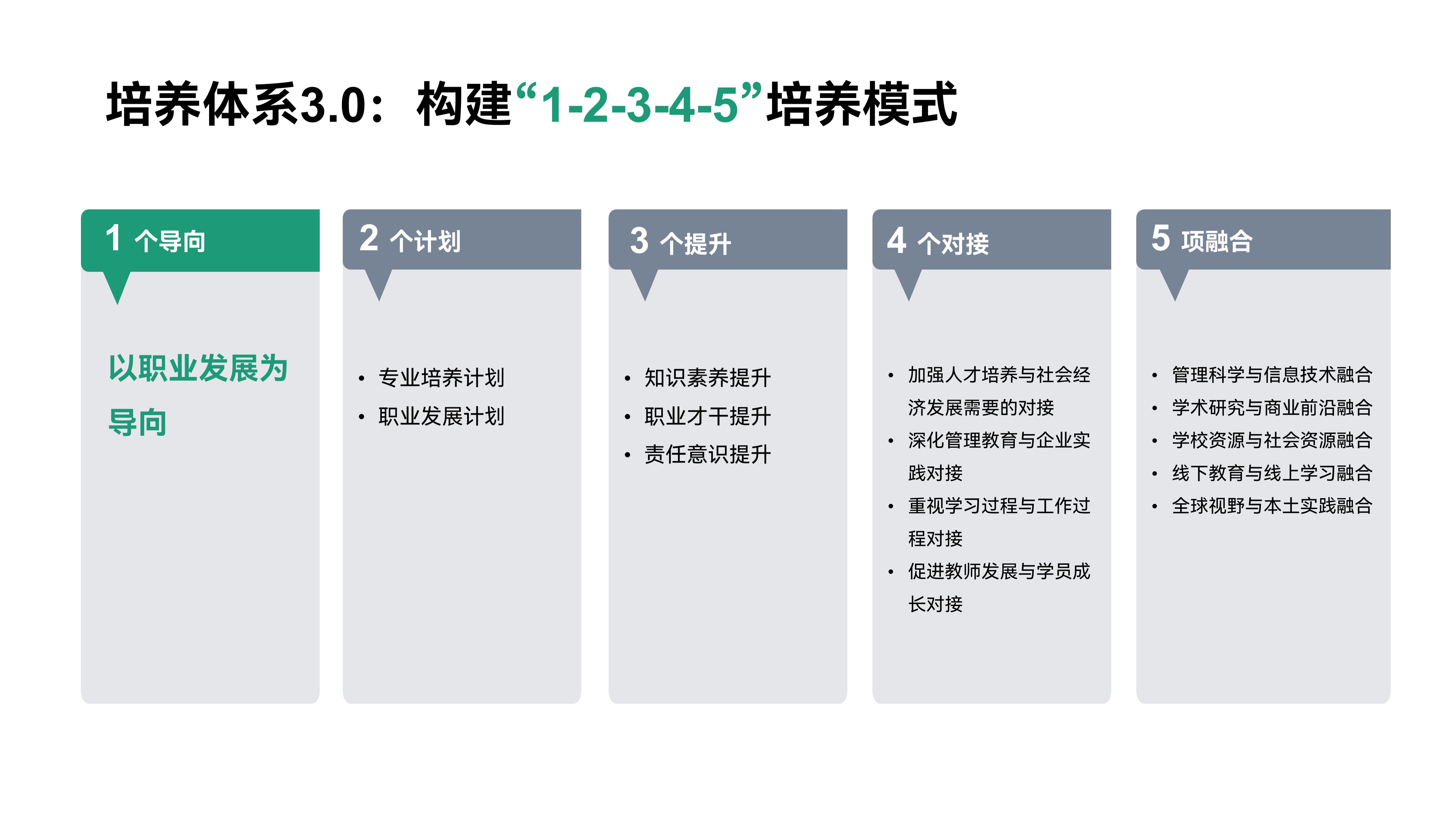 三亿官方官网三亿(中国)_三亿(中国)MBA培养旨在通过专业知识的传授、职业技能的提升、社会责任意识的培养和全面素质的塑造,培养具有商业智慧、领导力和创新能力的管理人才,为职业发展和商业成功奠定坚实的基础,为此,构建“1-2-3-4-5”培养模式,提供更全面、现代化和实用的教育体验和服务。