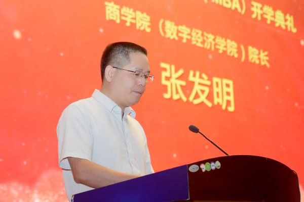 商学院院长兼MBA教育中心主任张发明致辞,张院长介绍了商学院学院基本情况及三亿官方官网三亿(中国)_三亿(中国)MBA专业的发展历程。对于新生提出三点要求:一、塑造高尚品格,勇担时代使命;二、端正学习态度,磨砺严谨作风;三、培养创新思维,拓展视野格局。祝愿各位新同学在未来的学习生活中,不断追求卓越,实现自己的人生目标!