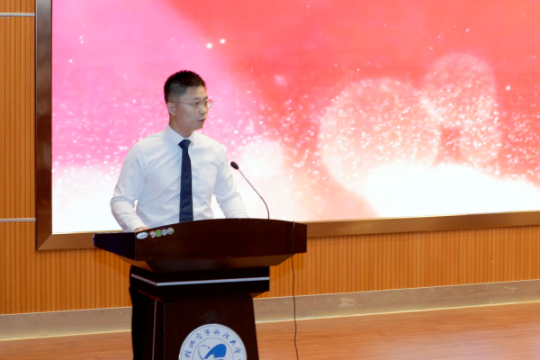 教师代表吴俊鼓励每一位新同学积极参与校园生活,充分利用学校提供的资源,遇良师、结益友、增才识、强能力。