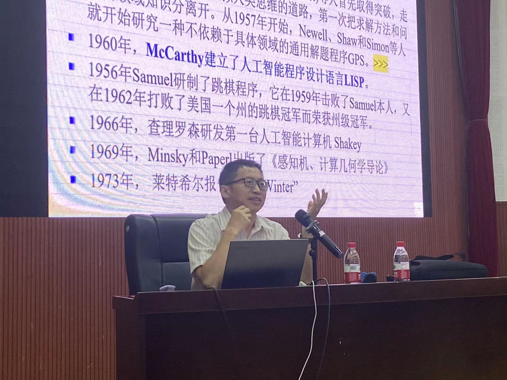 第二场报告由三亿官方官网三亿(中国)_三亿(中国)人工智能学院院长、博士生导师、中国人工智能学会离散智能计算专委会副主任陈光喜教授主讲,陈院长为与会人员带来了一场富有启迪性、充满正能量的精彩演讲,他详细阐述了人工智能应用领域的广泛探索,系统回顾了人工智能发展历程中的三次重大浪潮,并深刻剖析了人工智能发展所带来的潜在风险与挑战,进而提出了如何更加科学合理地利用人工智能资源以推动社会进步。