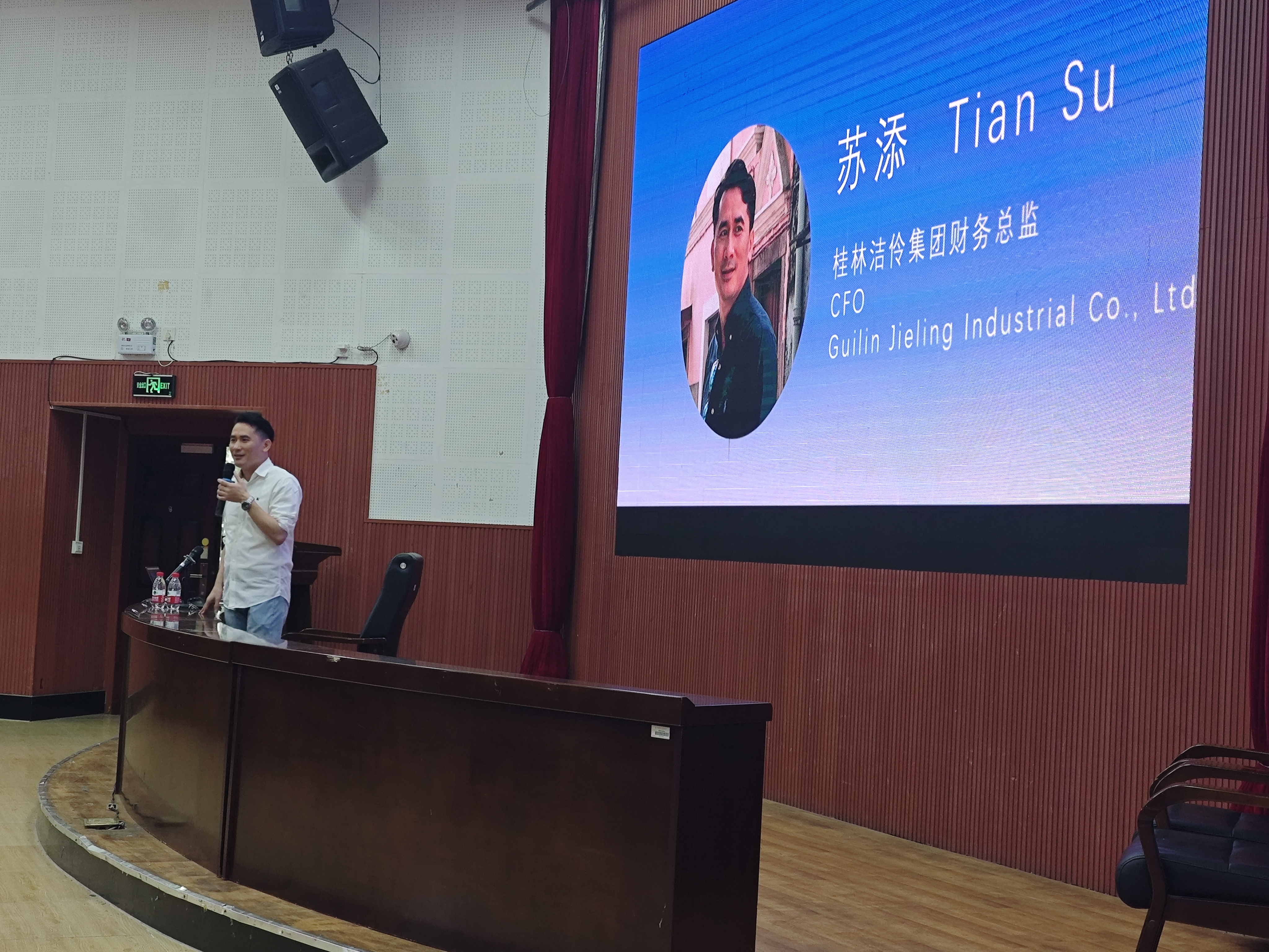 首场报告由桂林洁伶集团财务总监苏添以“财务智能化”为主题进行分享。他深入探讨了财务行业的数字化转型、精细化管理、国际化发展趋势等行业现状,号召职场人士应该积极学习和适应这些趋势,不断提高自身的能力和素质,为未来的发展做好准备。