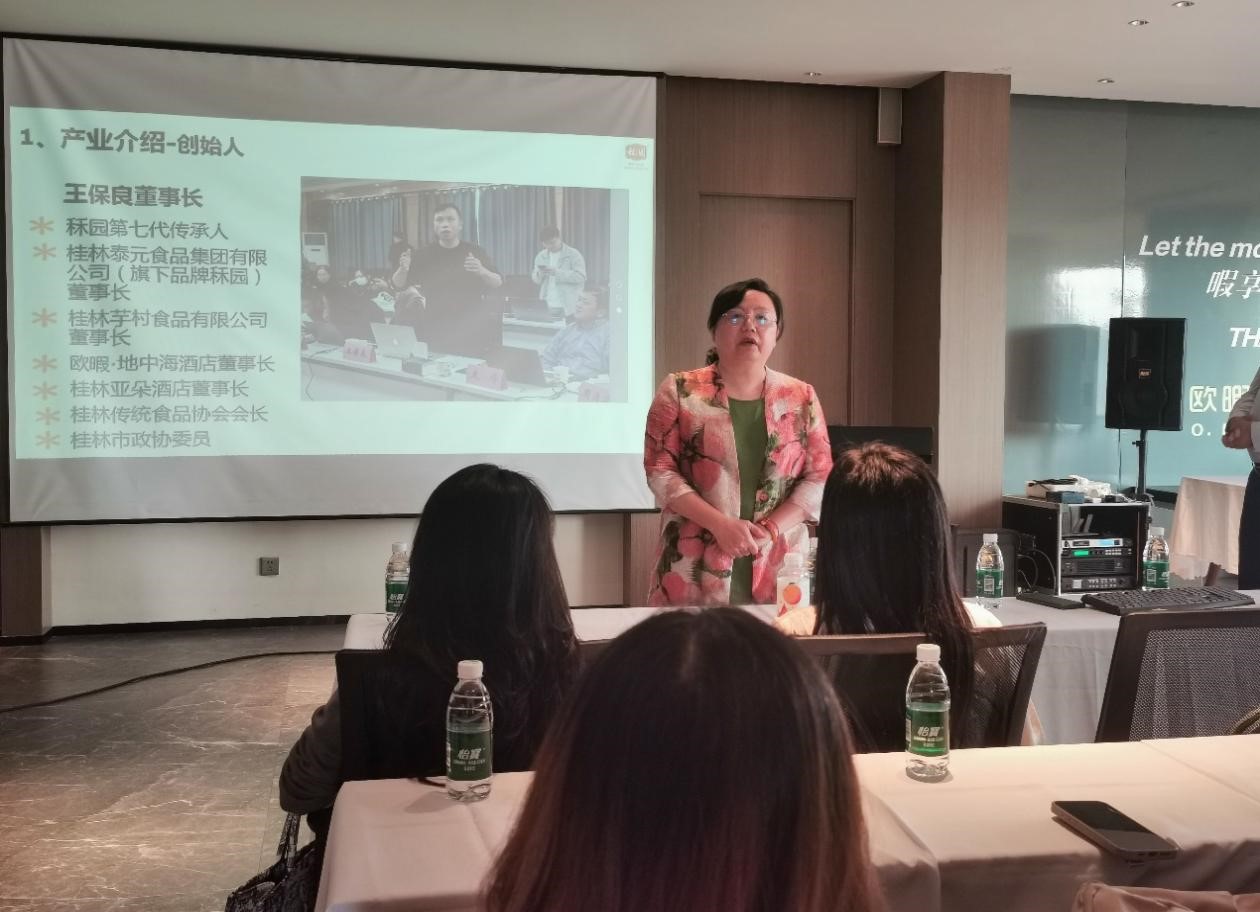 秝园品牌始于1852年,至今已有170年的历史。秝园桂花糕制作技艺和秝园状元饼制作技艺在2022年被列入广西壮族自治区非物质文化遗产。王董事长分享了如何将传统文化注入现代人喜欢的产品形式,如何将连科状元家的点心发扬光大,这些都是企业持续研究的课题。