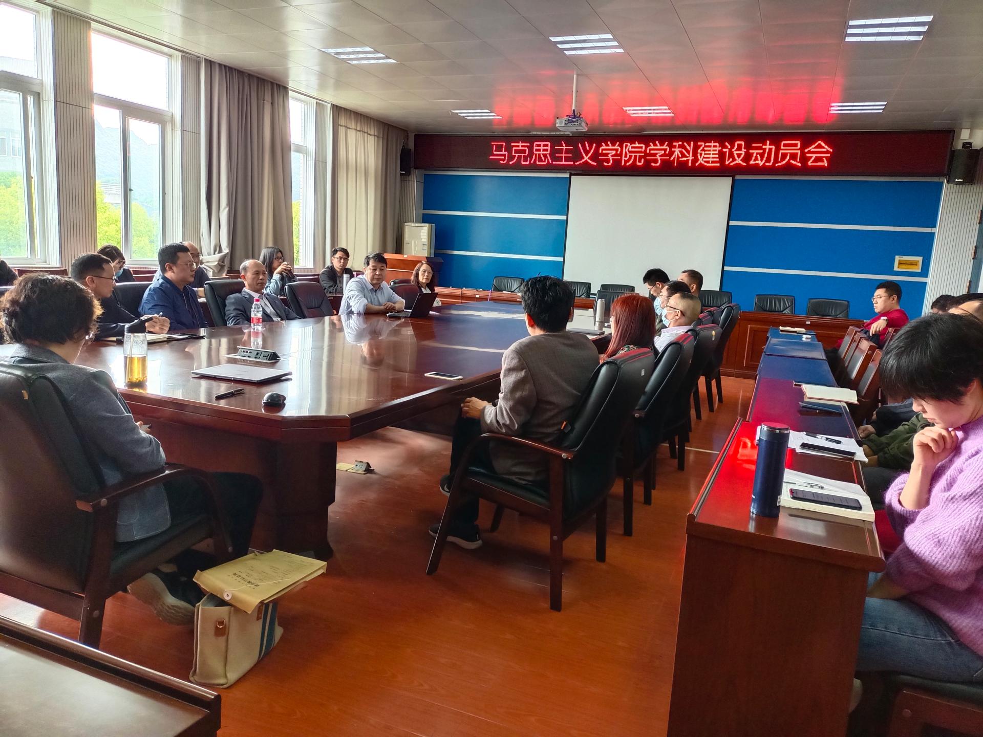 4月22日下午,马克思主义学院在花江校区第一教学楼308会议室召开学科建设动员会。学院全体领导班子成员和博士、副教授及以上老师参加了动员会。会议由院长邓国峰主持。