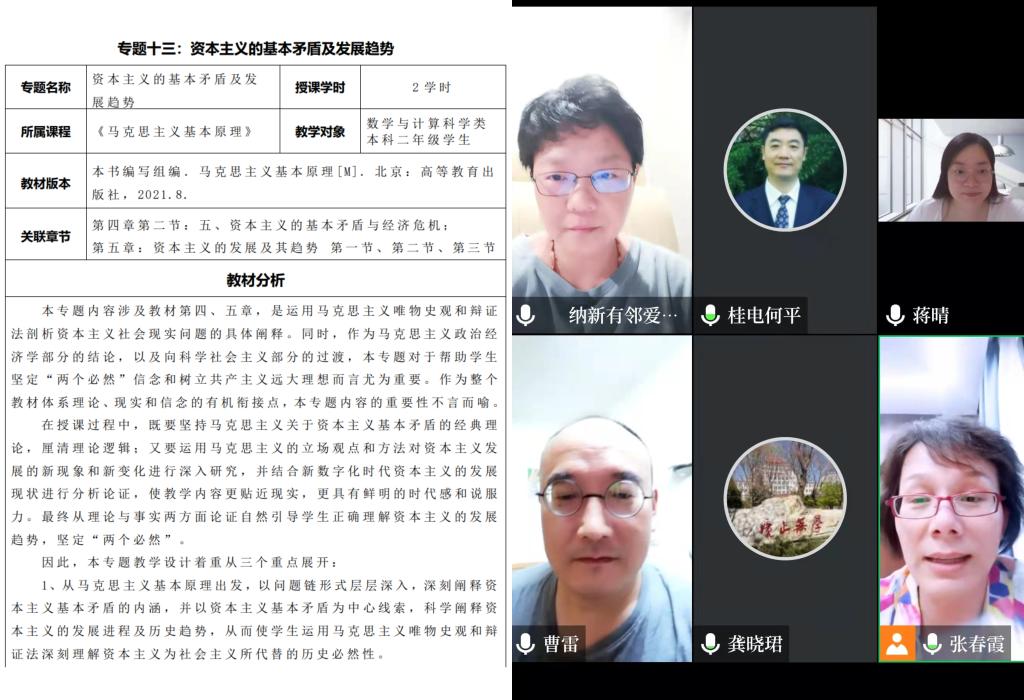 原理教研室加强集体备课制度,教学团队帮助青年教师打磨参赛内容