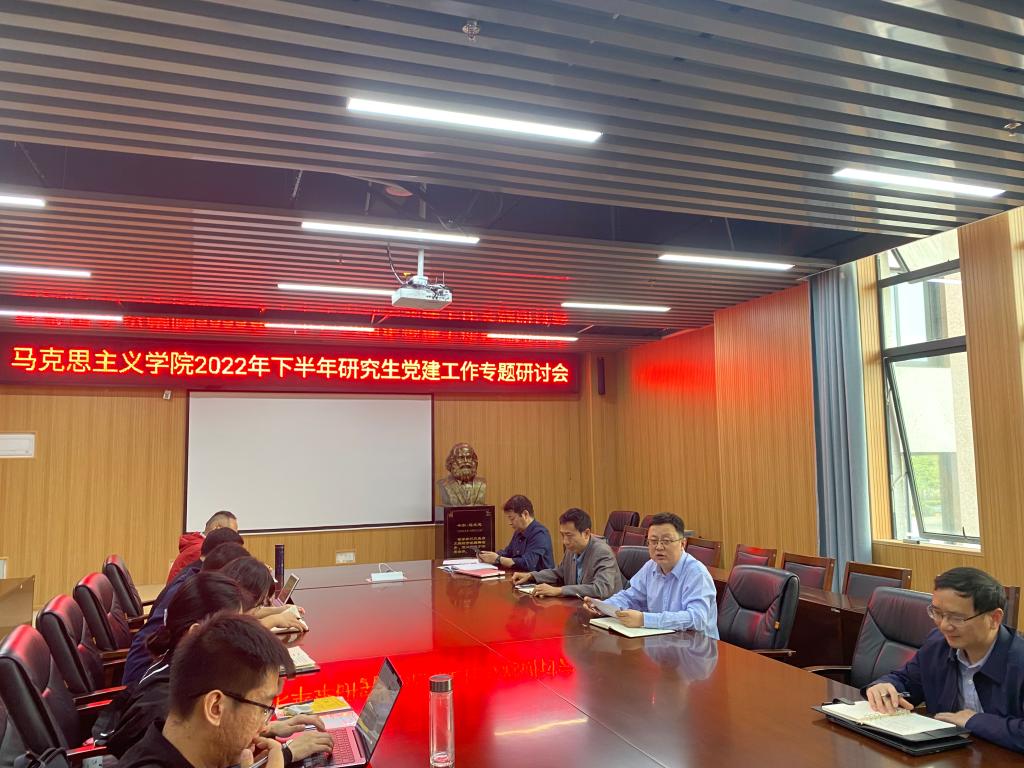 11月18日下午,马克思主义学院党委在文科综合楼211室召开2022年下半年研究生党建工作专题研讨会。会议由学院党委书记岳峰主持,学院党委委员、各党支部书记与会。