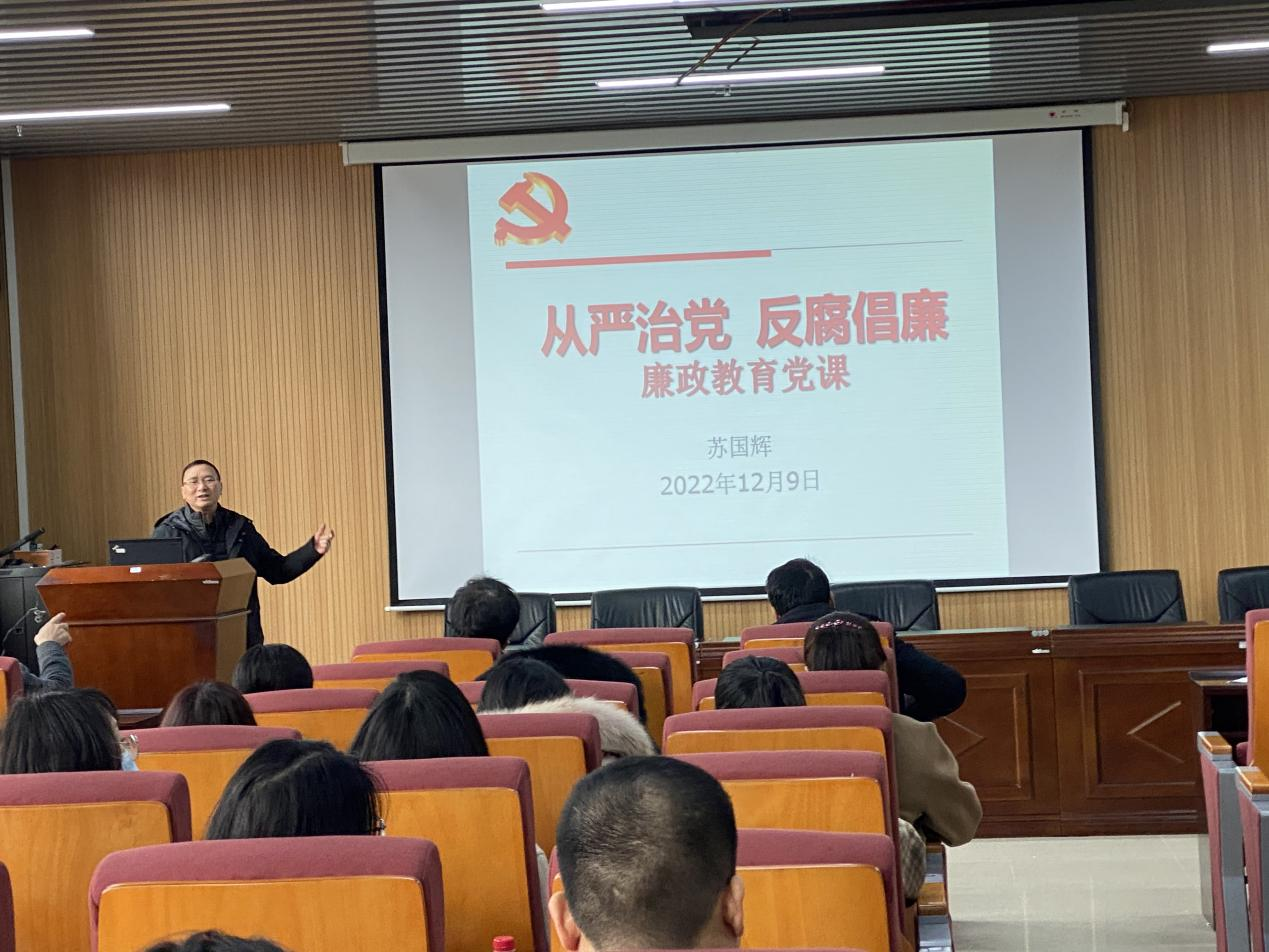 12月9日下午,马克思主义学院在花江校区文科综合楼223会议室举办了“廉政教育党课”,学院全体党员参加,党课由学院党委副书记、纪委书记、副院长苏国辉主讲。