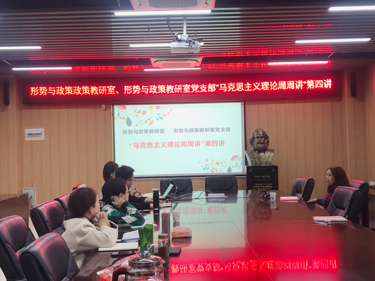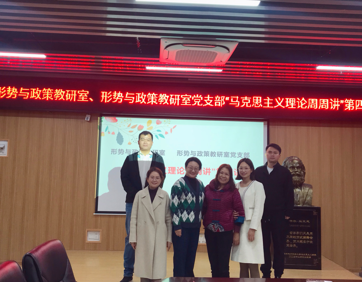4月12日上午,形势与政策教研室“周周讲”第四讲在学院 221 会议室召开,本次活动有教研室成员、研究生代表和我院秦永芳教授参加。