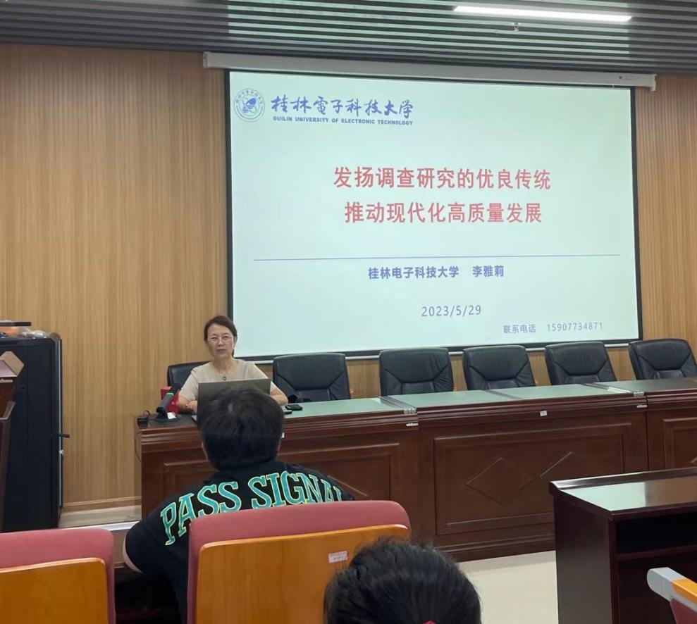 按照主题教育的部署要求,5月29日下午,马克思主义学院党委邀请学院李雅莉教授在花江校区文科综合楼223会议室,为全院师生党员作题为“发扬调查研究的优良传统,推动现代化高质量发展”的专题辅导报告。