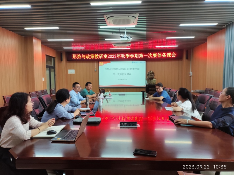 根据学校工作要求及自身实际情况,为推进形势与政策课高质量发展,9月22日上午在花江校区文科楼211会议室,形势与政策教研室开展2023年秋季学期第一次集体备课会,形势与政策课任课老师参加。