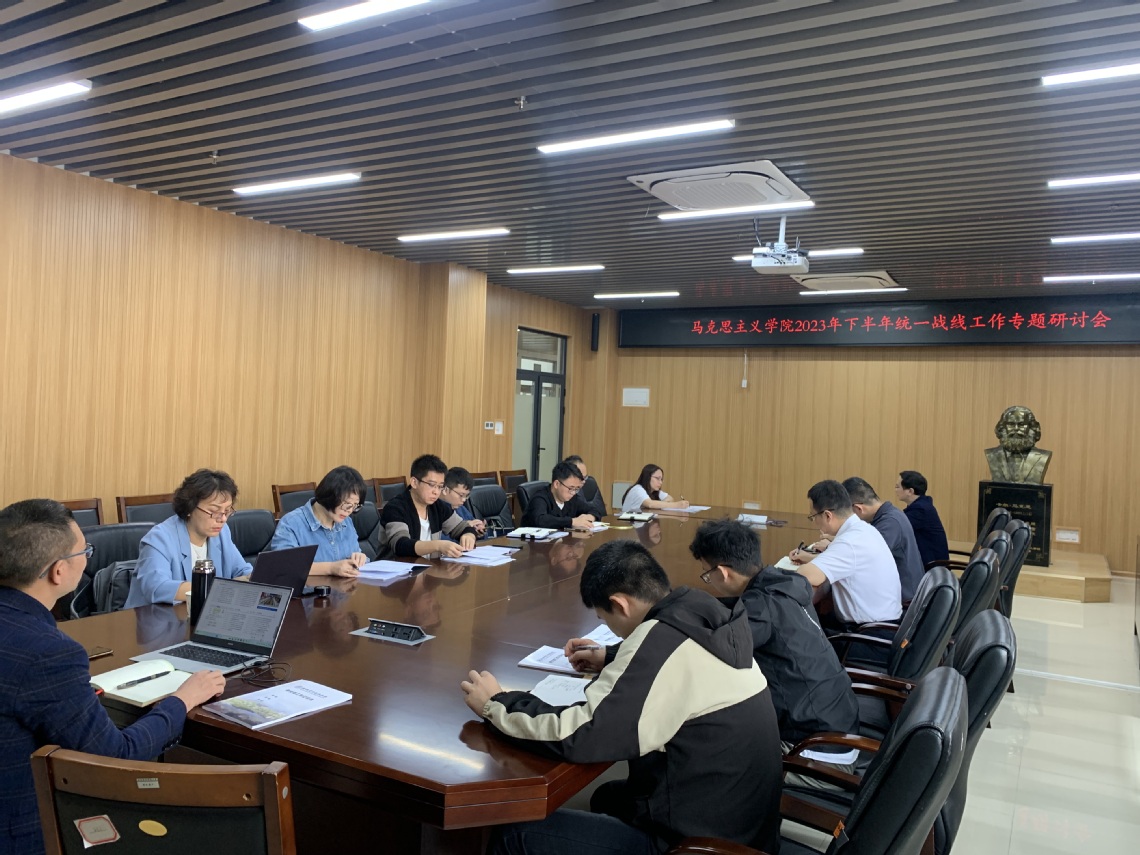 2023年10月13日上午,我院党委在文科楼211室召开2023年下半年统一战线工作专题研讨会。此次会议由学院党委书记岳峰主持,学院党委统战委员王玲霞领学,学院党委委员、各党支部书记参会。
