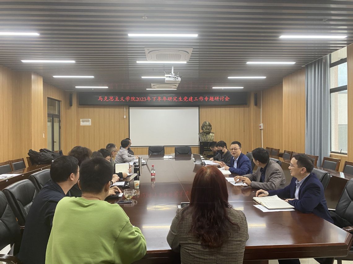 11月24日上午,马克思主义学院党委在文科综合楼211室召开2023年下半年研究生党建工作专题研讨会。会议由学院党委书记岳峰主持,学院党委委员、各党支部书记与会。