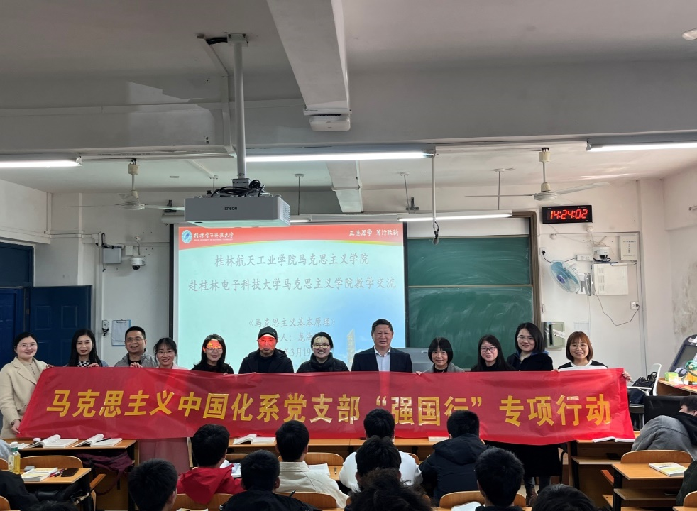 2025年3月19日下午,桂林航天工业学院“原理”教研室全体教师到我院教学交流暨集体备课会,通过专题研讨、公开课观摩等形式深化教学改革,共促思政课教学质量提升。这是我院思想政治理论课集群结对共建活动之一,也是我院马克思主义中国化系党支部“强国行”专项行动“联学联建”活动之一。