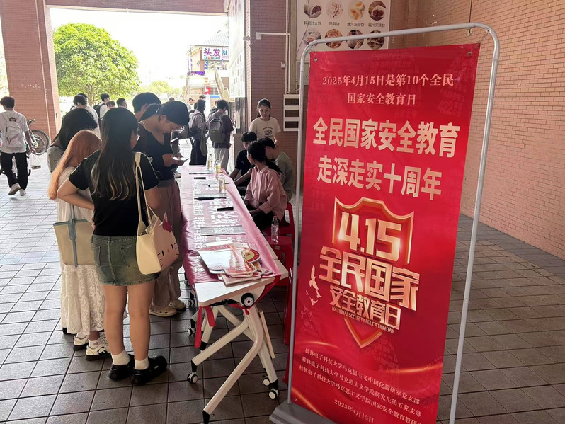现场布置紧扣国家安全主题,色彩鲜明的宣传展板摆放醒目,吸引众多师生驻足观看。签名环节开启后,一条长长的横幅铺展开来,上面印着“守护国家安全,共筑强国之基——4·15全民国家安全教育日”的醒目大字。师生们纷纷走到横幅前,拿起笔,庄重地签下自己的名字,每一个签名都代表着一份对维护国家安全的坚定承诺。与此同时,扫码答题环节也开始。只需轻松扫码,同学们便能开启这场国家安全知识的探索之旅。题目内容丰富,从政治安全到经济安全,从网络安全到文化安全,全面覆盖国家安全的各个领域。在答题过程中,同学们不仅能检验自己对国家安全知识的掌握程度,还能在每一道题目、每一个解析里,收获新的认知,深刻理解国家安全的重要意义。活动过程中,还有志愿者穿梭在人群中,向过往同学耐心讲解相关案例,让大家深刻认识到国家安全与每个人息息相关。短短几个小时,横幅上便写满密密麻麻的名字,宛如一幅承载着师生们责任与担当的独特画卷。