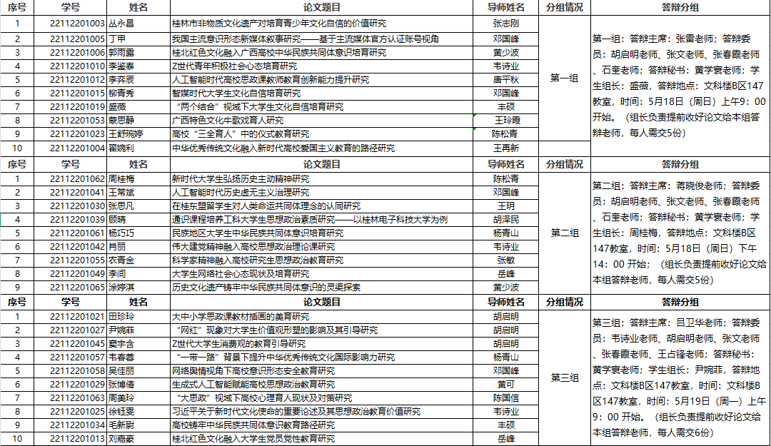 马克思主义学院思想政治教育研究方向2025届硕士研究生毕业论文答辩安排