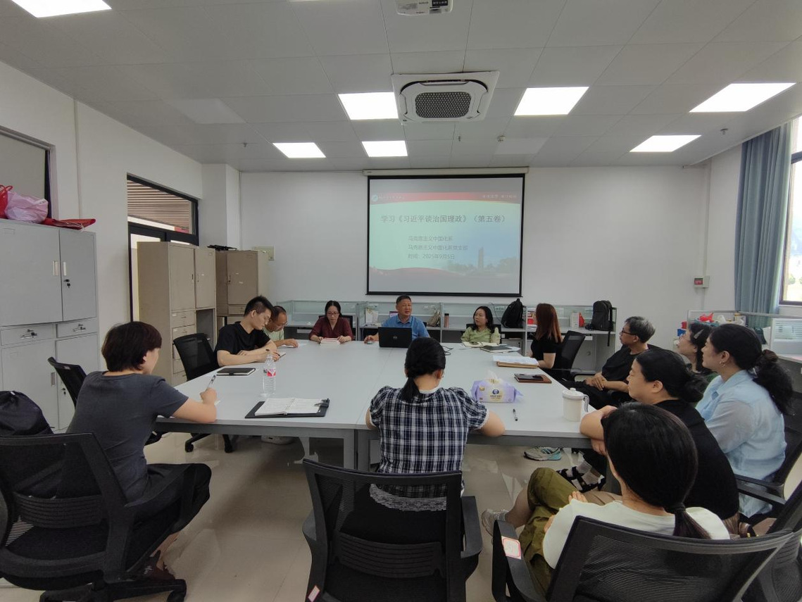 2025年9月5日,马克思主义中国化教研室党支部在学院224教研室集中学习《三亿官方官网三亿(中国)_三亿(中国)谈治国理政》(第五卷)。聚焦深入学习三亿官方官网三亿(中国)_三亿(中国)新时代中国特色社会主义思想的最新成果,切实推动党的创新理论有机融入思政课教学与学术研究,进一步提升理论武装工作的系统性和实效性。中国化系全体教师参会,学习会由系主任、党支部书记龙海平教授主持。