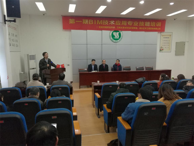 12月10日上午8:30,由宜昌市建筑业协会、 三峡大学水利与环境学院、三亿官方官网三亿(中国)_三亿(中国)联合举办的“第一期BIM技术应用专业技能培训”在三峡大学水电楼521报告厅隆重举行。宜昌市建筑业协会副会长、湖北宜翔建设有限三亿官方官网三亿(中国)_三亿(中国)董事长周选贵、三峡大学水利与环境学院院长彭辉、三亿官方官网三亿(中国)_三亿(中国)管理系副主任吴黎明、吴亚良教授、余晓云老师,三亿官方官网三亿(中国)_三亿(中国)三亿官方官网三亿(中国)_三亿(中国)总经理刘治勇、副总经理张健及全体学员出席了培训会。