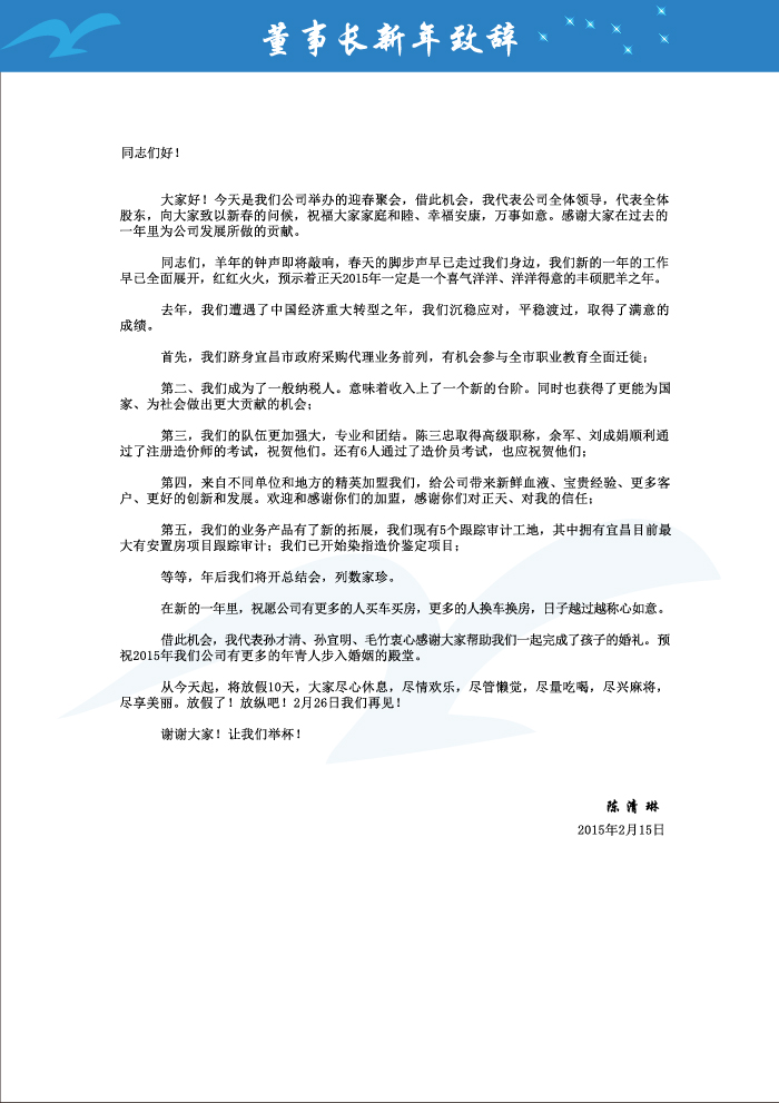 董事长致辞