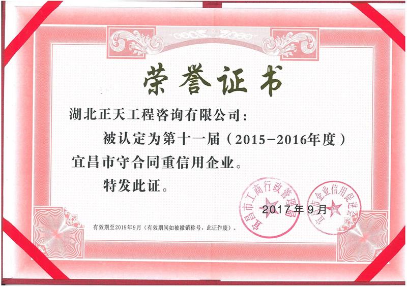 宜昌市2015-2023年度守合同重信用企业