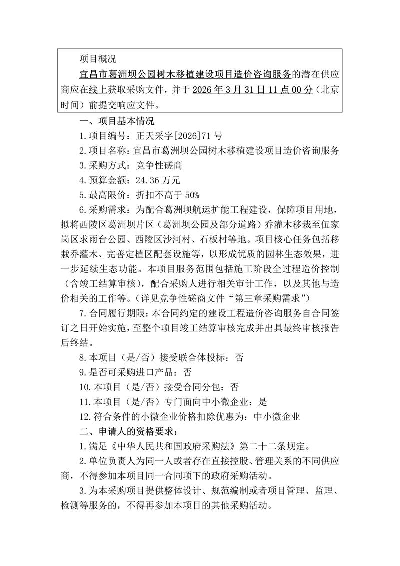 宜昌市葛洲坝公园树木移植建设项目造价咨询服务竞争性磋商公告
