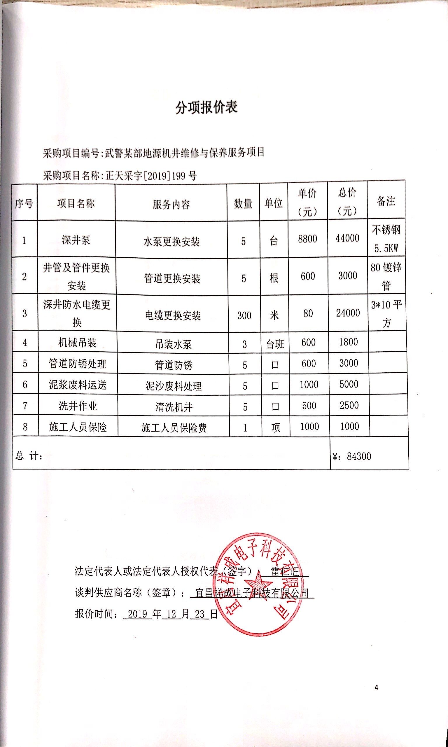 根据相关文件要求,三亿官方官网三亿(中国)_三亿(中国)受武警某部的委托,于2019年12月24日就武警某部地源机井维修保养服务项目(第二次采购)进行竞争性谈判采购,按规定程序进行了谈判。现就本次采购的成交结果公告如下: