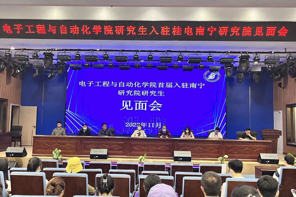 11月17日下午,电子工程与自动化学院在桂电南宁研究院报告厅召开学院首届入驻研究生见面会。学院党委副书记段筱雨、学院副院长胡放荣、各科研团队导师代表以及学院全体入驻研究生参加会议。