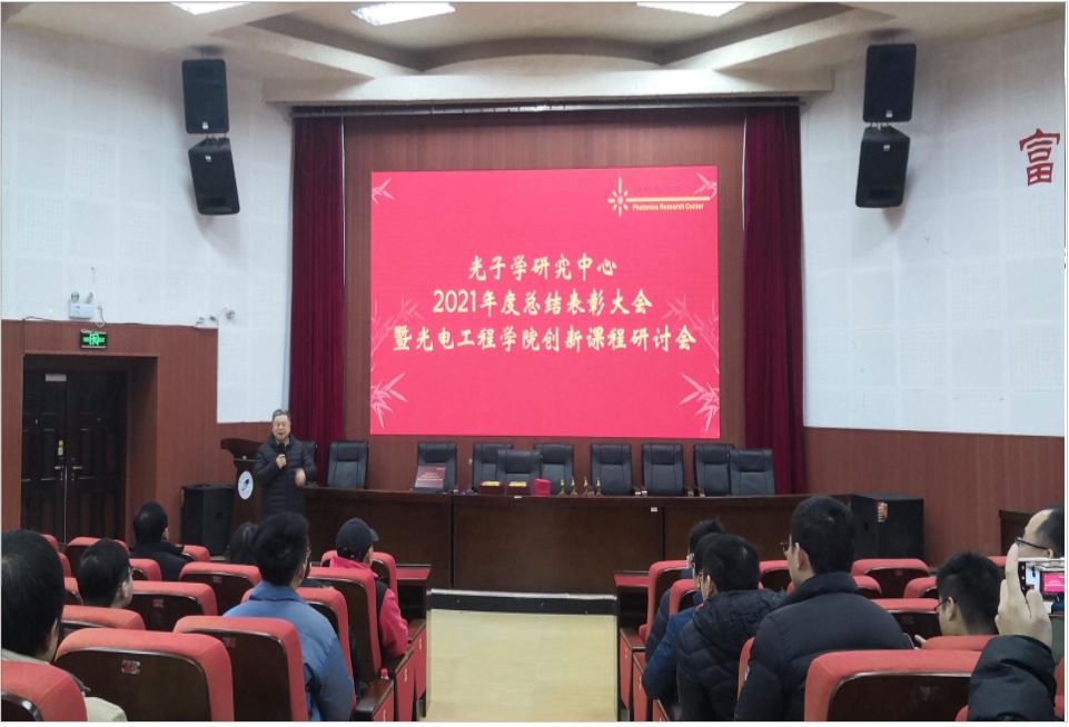 2021年12月21日,光子学研究中心2021年度总结表彰大会暨光电工程学院创新课程研讨会在三亿官方官网三亿(中国)_三亿(中国)东区第三教学教一楼报告厅隆重召开。会议由光子学研究中心主任苑立波教授主持。研究生导师邓洪昌、杨宏艳、邓仕杰、于凌尧、尹君、滕传新、徐荣辉等参加本次会议。特邀王祥书记、秦祖军等老师参加本次会议。来自光子学研究中心的全体博士和硕士研究生参加了本次会议。