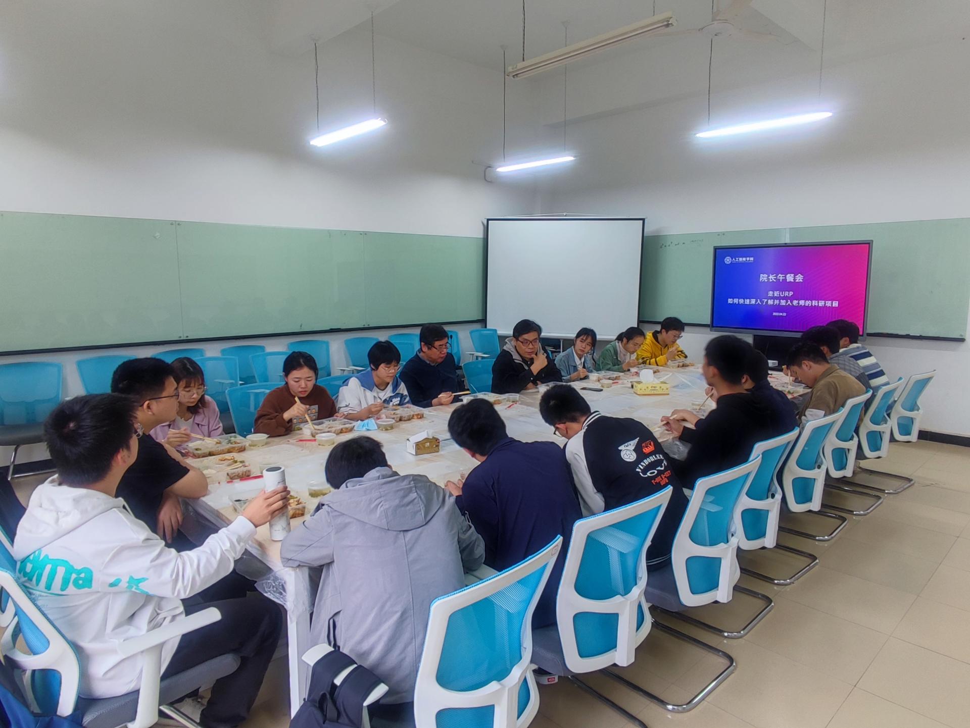 本次院长午餐会围绕“走近URP——如何快速深入了解并加入老师的科研项目”主题进行了交流。会上,丁数学院长介绍了URP(本科生科研项目Undergraduate Research Program)的背景、意义、内容、目标以及往期开展情况,希望同学们积极参加本科生科研项目,进一步提高自身的创新思维、创新能力以及核心竞争力。张军副院长鼓励同学们通过多途径去了解URP 导师的研究项目,走出自己的舒适区,多实践多思考,不断调整思维结构,争取早日加入 URP 导师的科研实验室和研究团队。