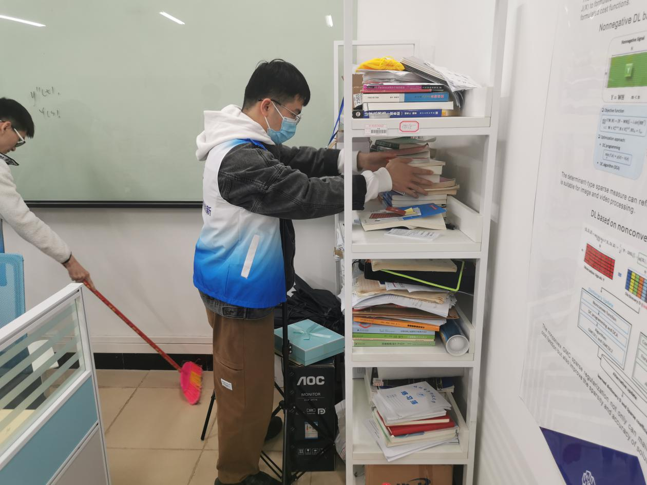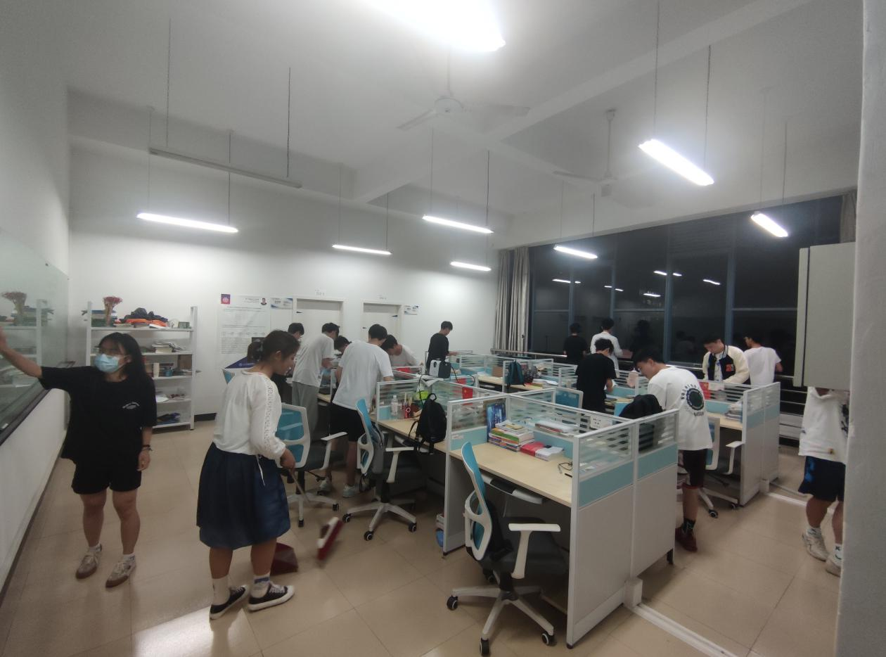 活动期间,参与学生对学院实验室、自习室进行了卫生清理和桌椅规整,参加活动的志愿者们分工明确,有条不紊的将各教室、自习室整理干净,让学院拥有干净卫生的教学环境,为学生打造一个舒适干净整洁的学习环境。