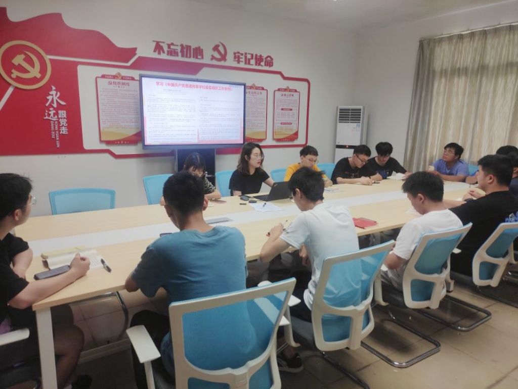 2022年6月14日下午,人工智能学院学生党支部于实训楼228会议室开展了学习《中国共产党普通高等学校基层组织工作条例》专题党课。本次党课由学生党支部书记崔亚南同志主讲。