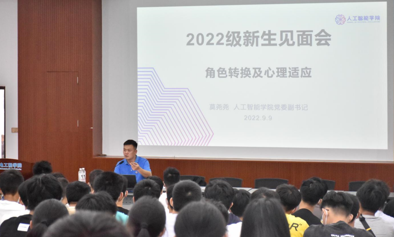 9月9日上午,人工智能学院2022级新生见面会在机电大楼108报告厅举行,2022级全体在校新生参加会议,学院党委副书记莫尧尧出席并主持本次会议。