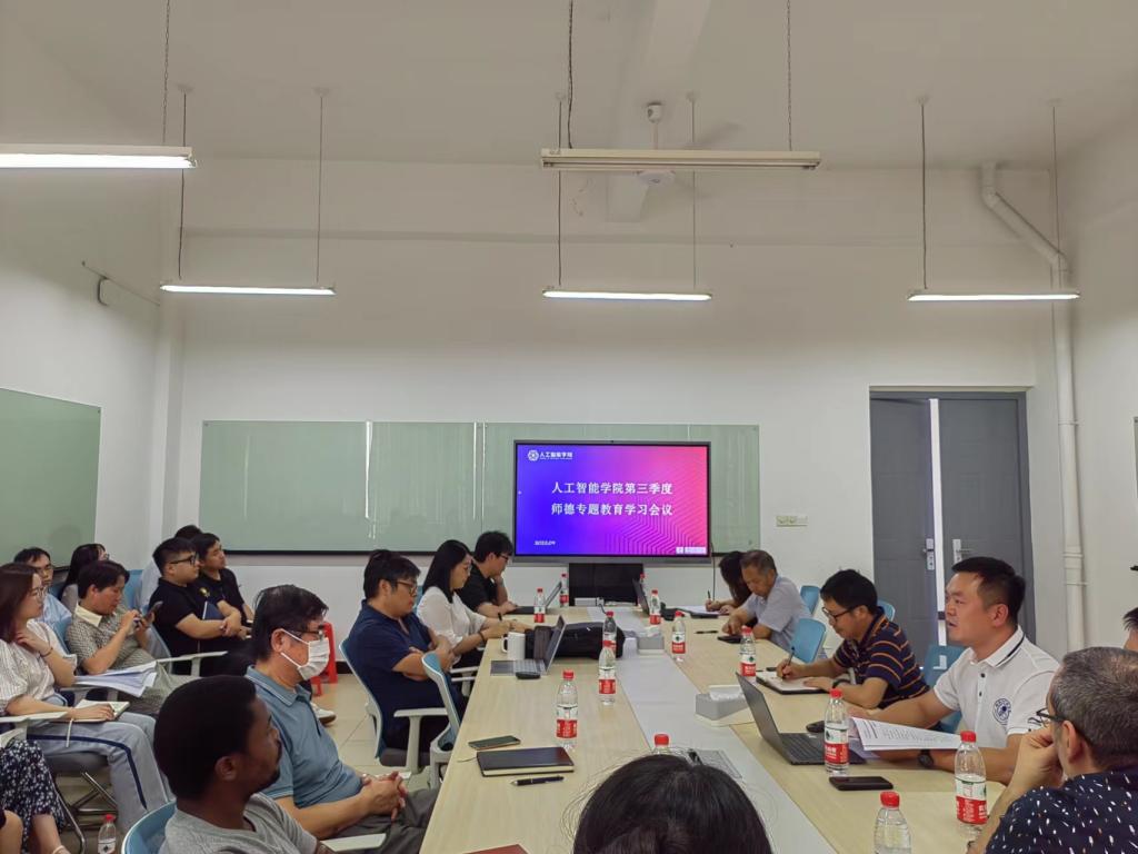 9月26日下午,人工智能学院在实训楼2楼220会议室召开第三季度师德专题教育学习会议。会议由学院党委副书记莫尧尧主持,学院全体教职工参会。