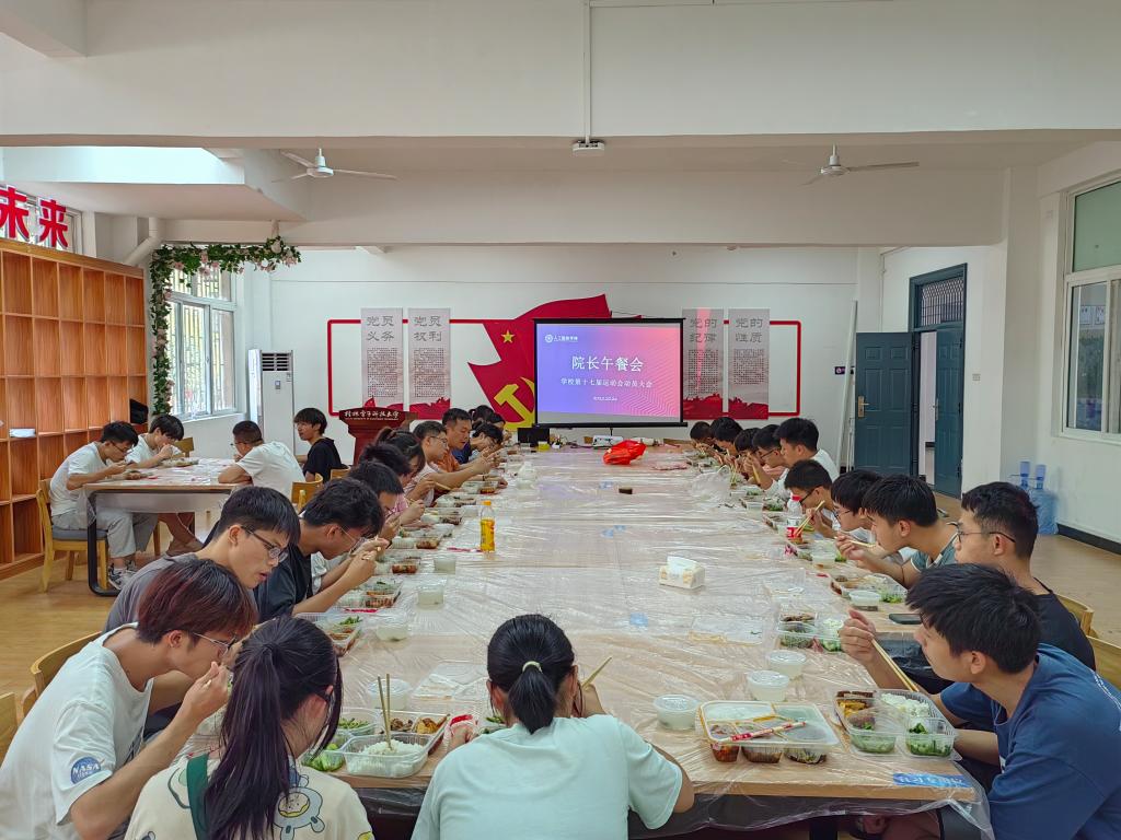 10月26日中午,人工智能学院在学生社区D区25栋一楼“党团之家”开展第二十七期院长午餐会活动,主题为学校第十七届运动会动员大会。学工处刘铁园副处长、学院党委副书记莫尧尧、学院2022级辅导员、学院运动员代表参加本次活动。