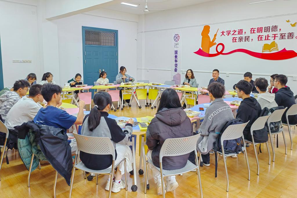 11月16日中午,人工智能学院在学生社区D区25栋105导师工作站举办第二十八期院长午餐会。外国语学院院长黄宇元作为特邀嘉宾参加午餐会。