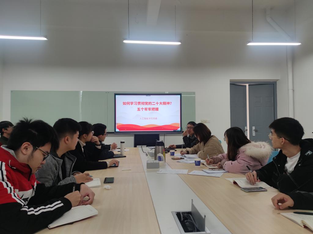 12月8日,人工智能学院院长陈光喜在花江校区实训楼220会议室为学院师生党员上专题党课。陈光喜以“如何学习贯彻党的二十大精神?五个牢牢把握”为主题,深入解读了“五个牢牢把握”的内涵和外延、重大意义和实践要求。他指出,“五个牢牢把握”是对党的二十大报告最精准的解读、最权威的辅导,全体党员要做到“五个牢牢把握”,在党的旗帜下团结成“一块坚硬的钢铁”,心往一处想、劲往一处使,为推动中华民族伟大复兴发挥作用。