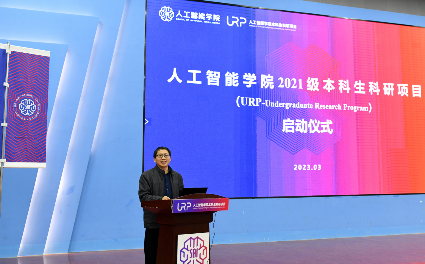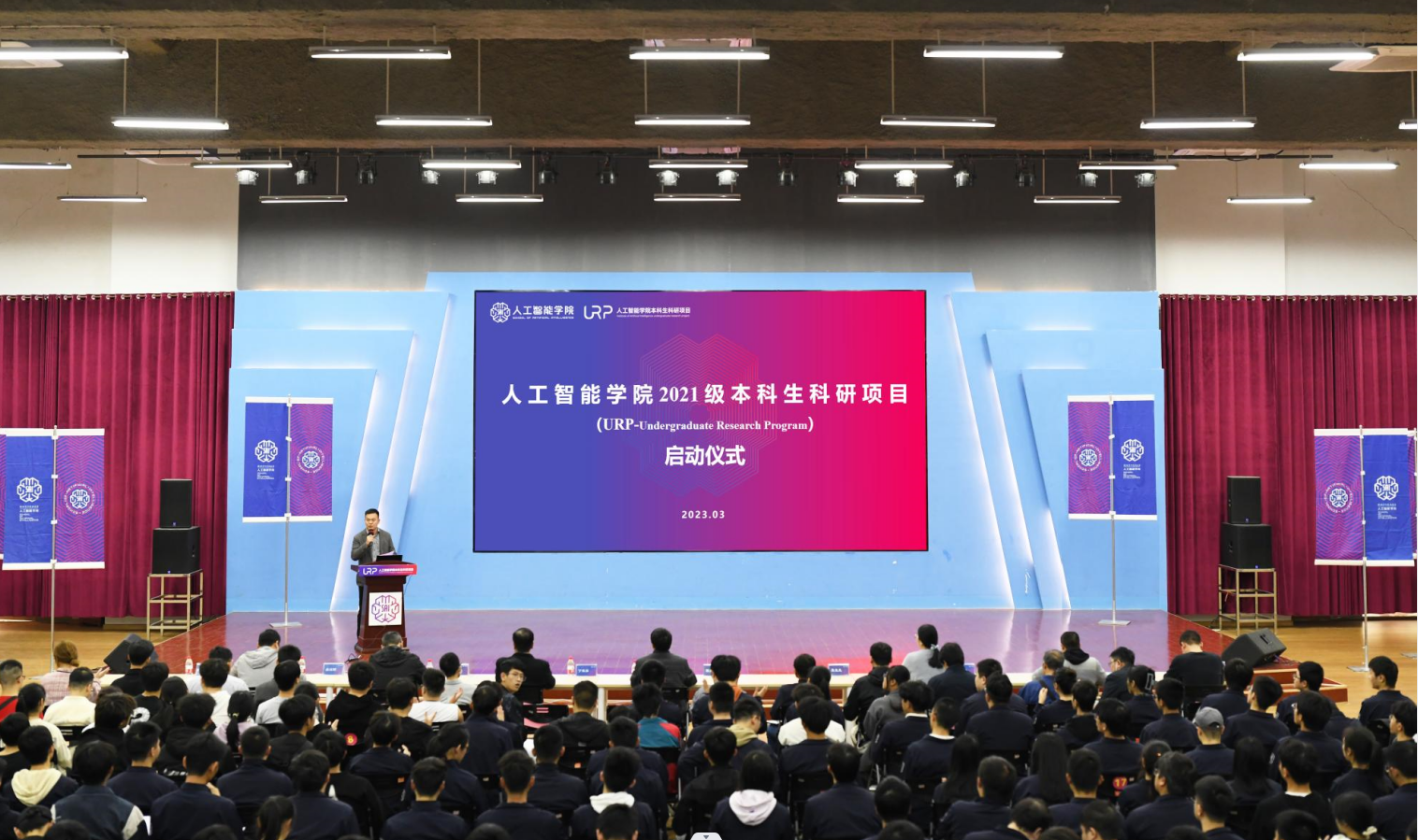 3月10日下午,人工智能学院在大学生活动中心演艺厅举行2021级“本科生科研项目(URP—Undergraduate Research Program)”计划启动仪式。学院院长陈光喜、创新学院院长丁数学、党委副书记莫尧尧、副院长刘振丙、中国电子科技集团公司第三十四研究所集团公司专家钟伟、广西华云大数据有限公司副总经理翟勇、广西优视智能科技有限公司研发总监吴汉明、桂林海威科技股份有限公司大数据开发工程师唐江华以及院内外各指导老师、全体辅导员、全体2021级、2022级本科生参与本次活动。