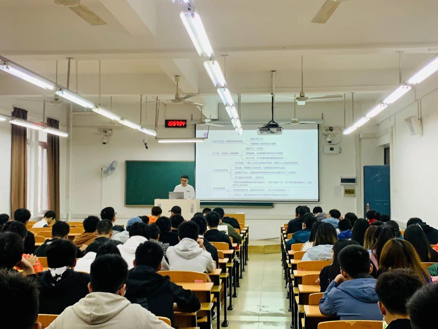 会上,王浩宇同学结合自身学科竞赛能力,为到会同学讲解如何通过提高学科竞赛能力培养勤学意识,重点围绕学校科技竞赛的类型、参加竞赛所需的技能等方面向同学们详细介绍了如何选题、需要掌握的技能、具体的技术路线以及大学职业规划和心理调适等内容。分享结束后,同学们踊跃提问,与主讲同学进行了交流互动。
