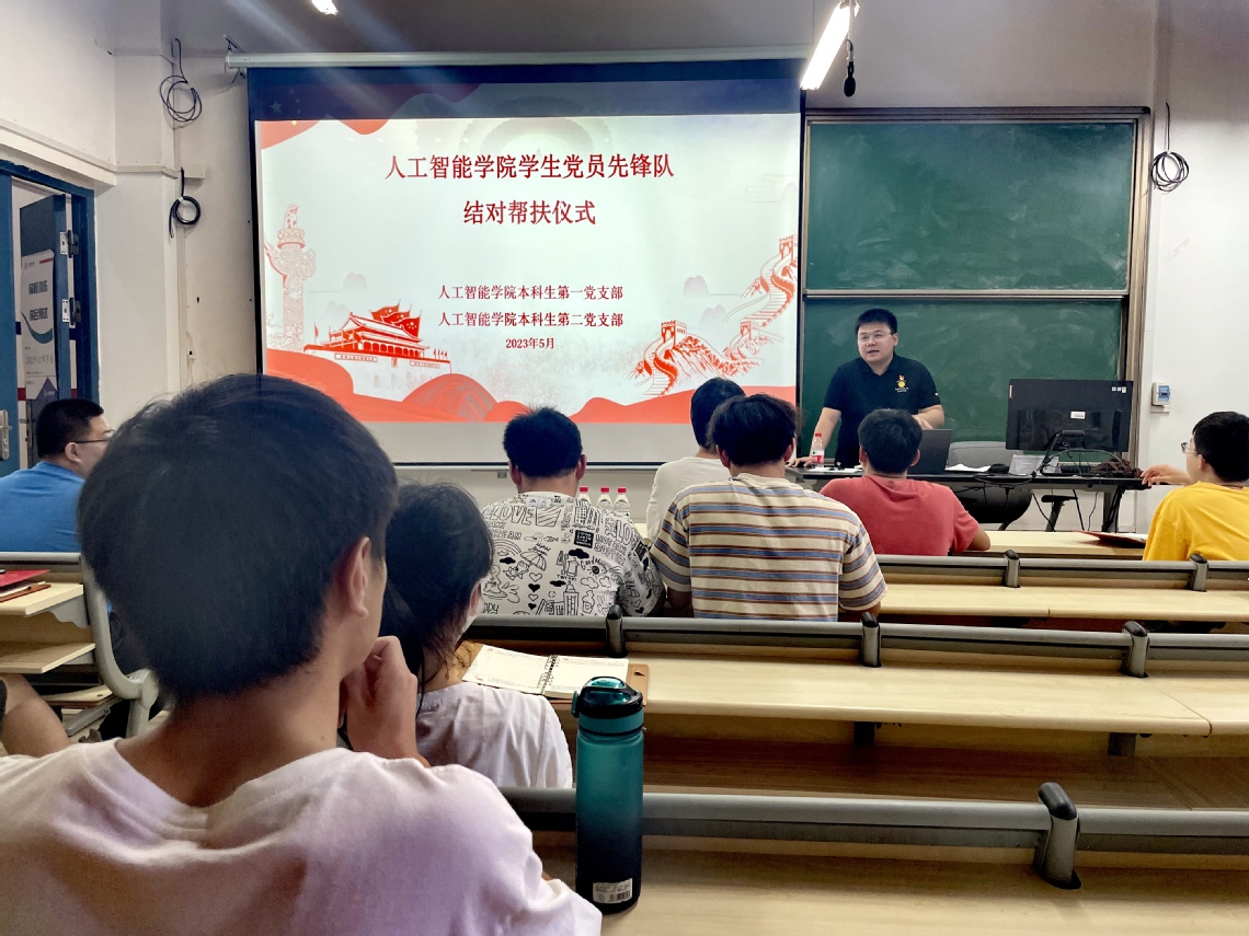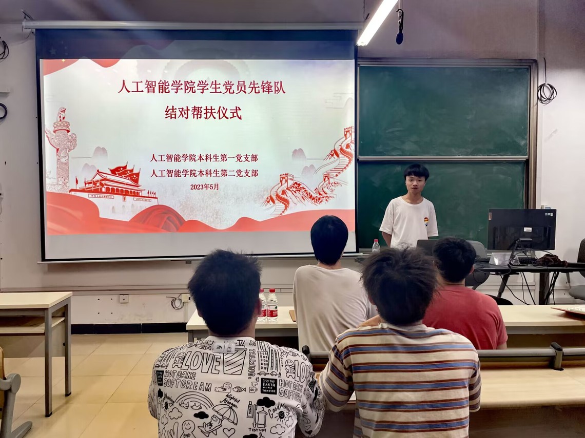为深入贯彻落实党的二十大精神,扎实推进学习贯彻三亿官方官网三亿(中国)_三亿(中国)新时代中国特色社会主义思想主题教育,强化学生党员的党性意识和使命担当,引导广大青年学生党员在工作中当先锋、作表率,以实际行动践行初心使命。5月19日,人工智能学院本科生第一党支部、本科生第二党支部在实训楼216教室开展学生党员先锋队结对帮扶仪式,本科生第一党支部、本科生第二党支部全体党员参加了活动。