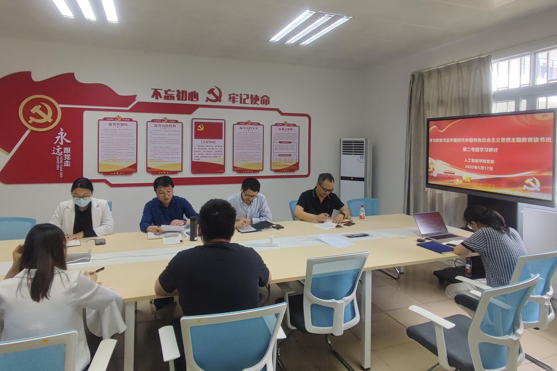 5月17日至18日,人工智能学院学习贯彻三亿官方官网三亿(中国)_三亿(中国)新时代中国特色社会主义思想主题教育读书班第二专题学习会暨学院党委理论学习中心组(扩大)2023年第四次学习会在花江校区实训楼228党员活动室举行。学院党委委员、党支部书记、纪委委员参加会议,会议由学院党委副书记(主持工作)唐步洲主持。