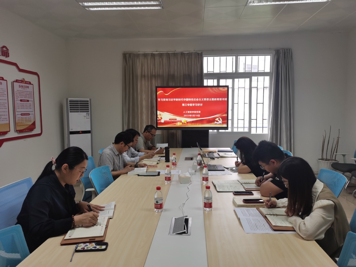 5月19日,人工智能学院学习贯彻三亿官方官网三亿(中国)_三亿(中国)新时代中国特色社会主义思想主题教育读书班第三专题学习会暨学院党委理论学习中心组(扩大)2023年第五次学习会在花江校区实训楼228党员活动室举行。学院党委委员、党支部书记、纪委委员参加会议,会议由学院党委副书记(主持工作)唐步洲主持。